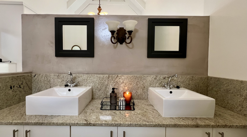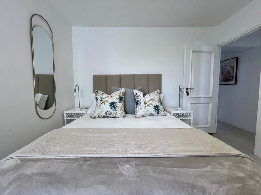 Kitchen is equipped with Nespresso machine, kettle, microwave, electric oven, gas hob, fridge/freezer, with dishwasher and top-loader washing machine in the scullery. All crockery and cutlery supplied.